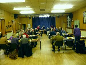 After the service we left the church and made our way round the corner to the Village Hall for sandwiches and cake and lots of tea and coffee. After the 100 club draw and and raffle, the meeting was started.