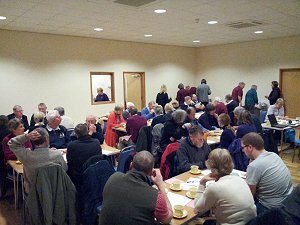 After the service we left the church and made our way to "The Venue" at Navenby for the tea. This consisted of sandwiches and sausage rolls with cake, tea and coffee. Before the meeting began the 100 club was drawn.