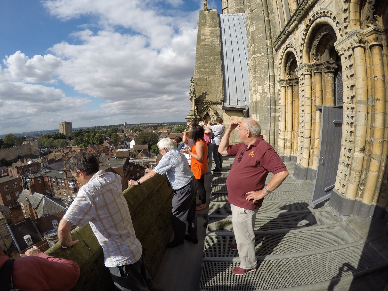 Once we had accumulated sufficient ringers we made our way up the tower. There was a roof tour in progress and I managed to quickly sneak out onto Banks's View and snap a picture.