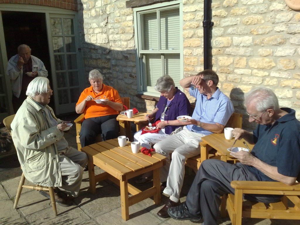 Hot and cold buffet refreshments were served from the kitchen, along with copious quantities of London Pride beer (it was a pub after all!) plus tea, coffee and soft drinks for our younger members. It being such a lovely evening, we sat outside in the garden to eat and socialise.