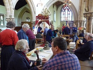 A number of vistors came into the church, both ringers and non-ringers, including a large contingent of French visiting from Nettleham's twin town, Mulsanne. Many of them had a go on the mini ring and enjoyed refreshments and the other events taking place.