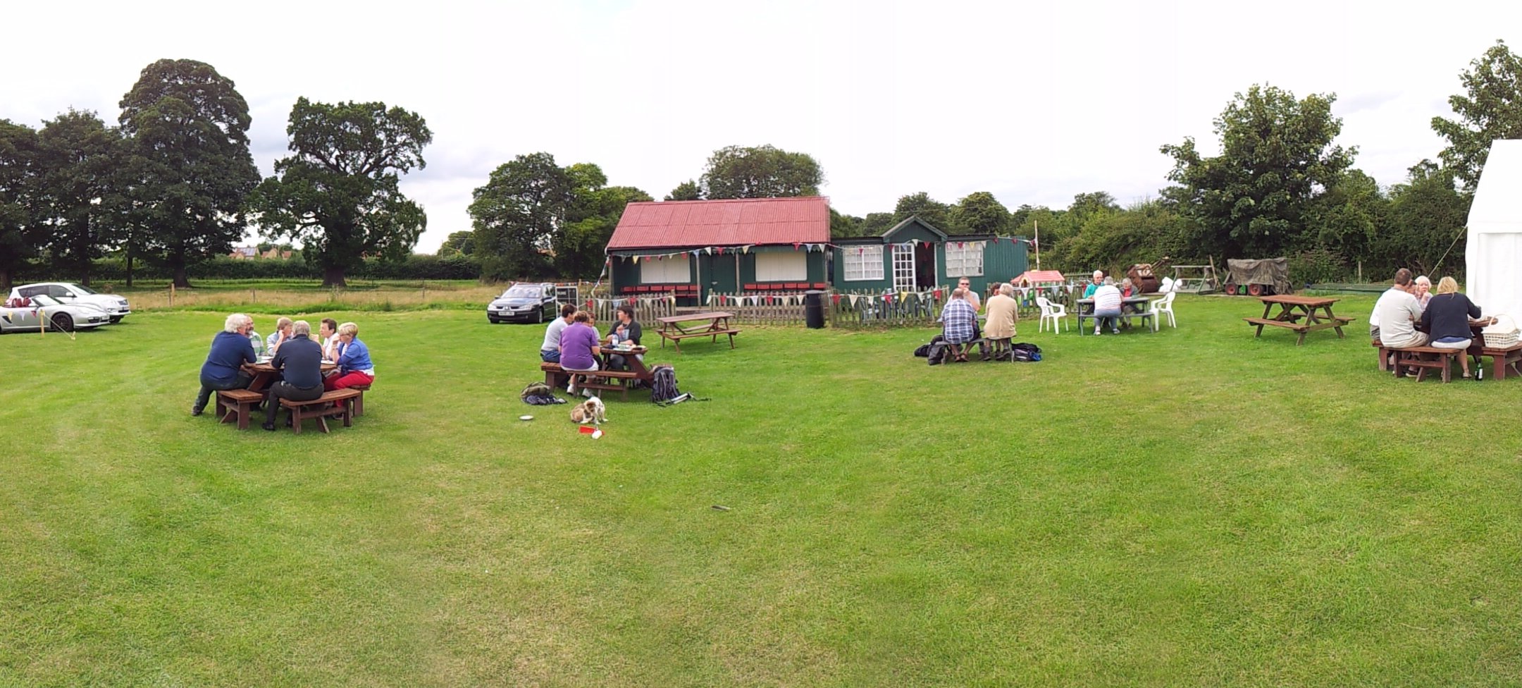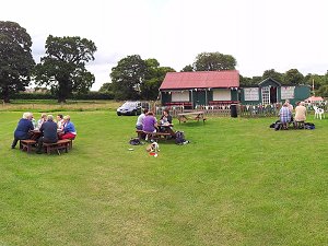 After the service, the members proceeded on the return journey to Nocton over the fields. Rather than returning to the church, we walked to Nocton Cricket Club, where a picnic style tea was being dispensed by Yvonne Woodcock from the Pavillion. It being such a lovely afternoon, the members sat outside on the picnic tables to eat their sandwiches and drink tea and coffee.