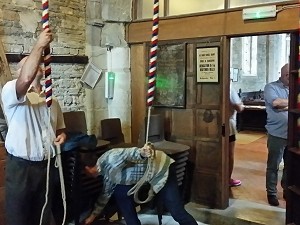 A few more people had turned up and despite the length of the ropes we successfully rang a variety of methods and rounds and call changes. Eventually we rang the bells down and after everyone had left I locked up the tower, leaving the key in the "secret" place that the local Tower Captain had pointed out to us when we arrived.