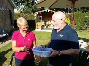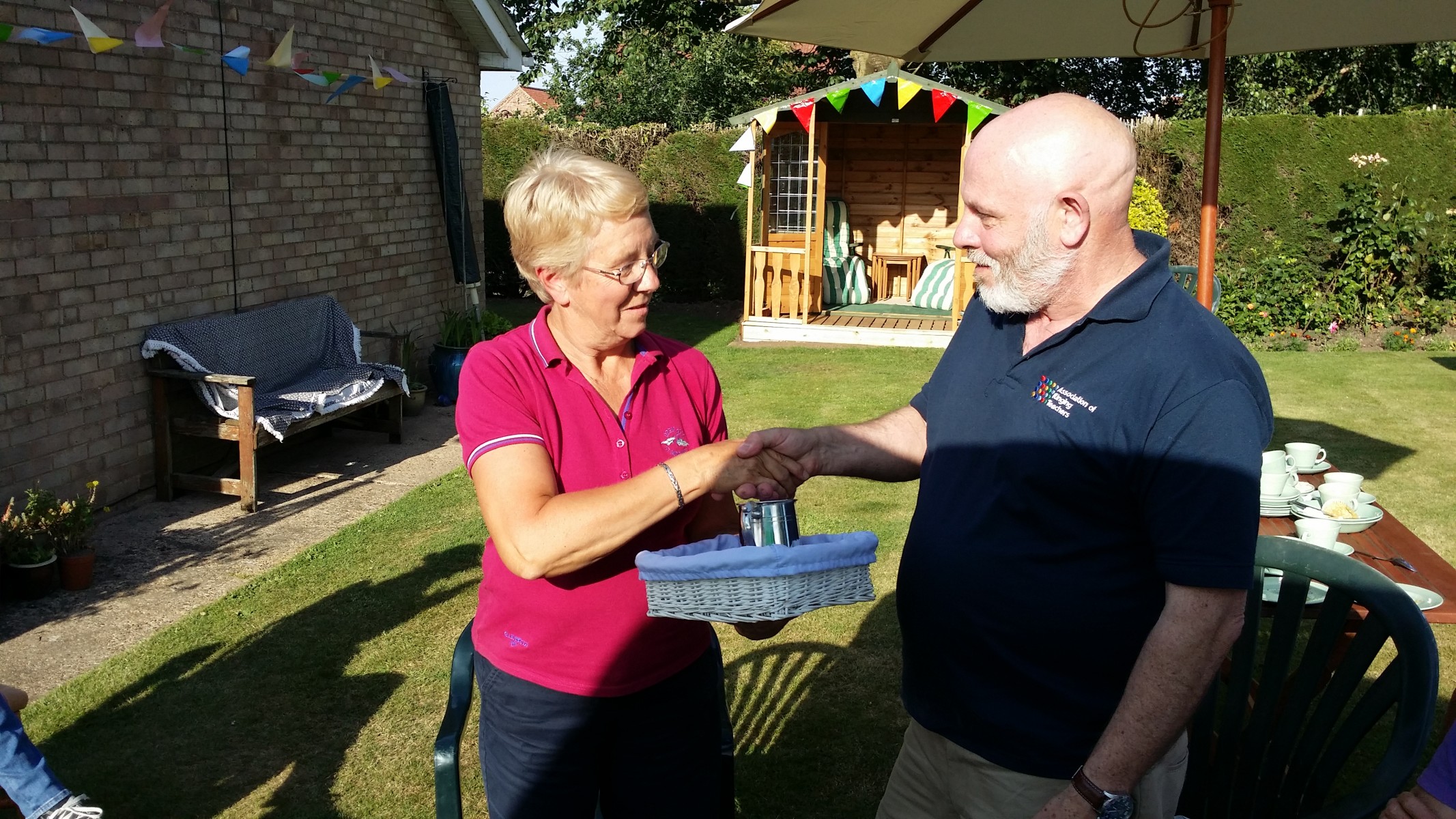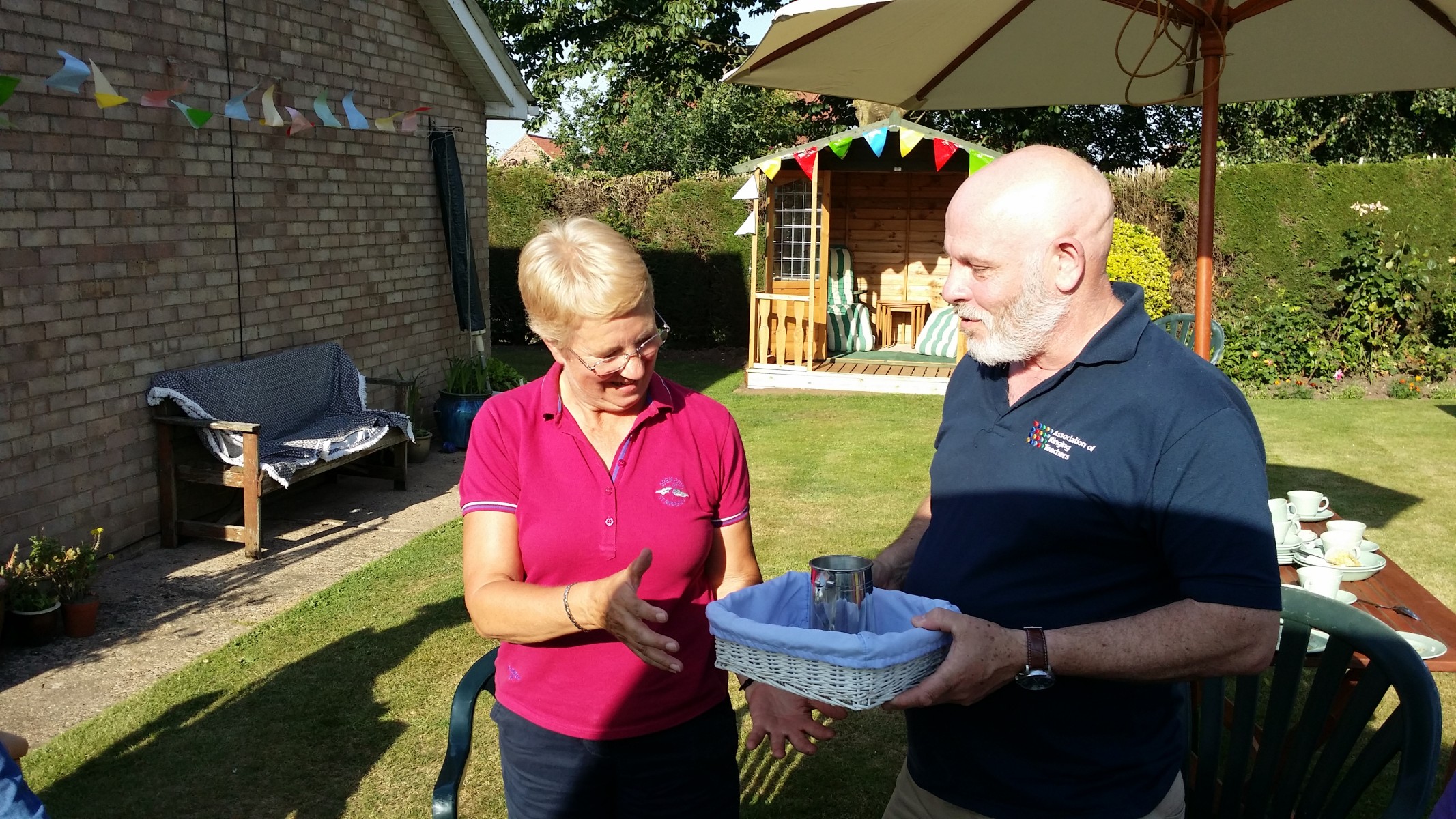 It had not been possible to present the winning team with the trophy when the results were announced, because they had left to make preparations for the tea. However, once we were all replete with food and drink, Colin Ward presented the trophy, which is a pewter tankard, to Yvonne Woodcock. We then had a short meeting (like 10 minutes) just to take care of any business. It was decided that all the proceeds from the day, from the collection taken at the service and money made from the tea, would be presented to the church for the restoration of the organ. Some £150 was raised for this worthy cause.