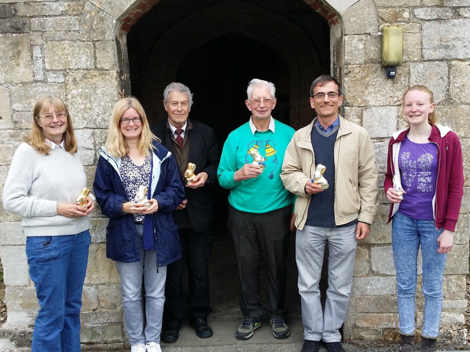 Meanwhile Team 3 had got going. Ooh! They were a bit good! Not perfect by any means, but better than the first 2 teams. Eventually the contest was over and we went in to the church for the results. The judge turned out to be Betty Stracey. Not too surprisingly team 3 won and was presented with their certificates and a chocolate bunny each. The treasure hunt answers were given out with 3 people getting all of them correct. The raffle was drawn, as was the 100 club. Margaret Parker won the Sausage Contest and was presented with the highly coveted "Onion" Trophy.