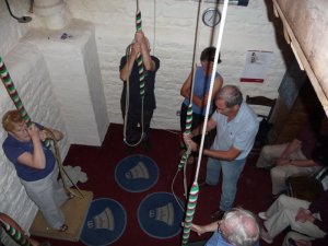 Ringing swiftly moved on to Navenby which is an excellent ring of 6. Whilst a wide variety of methods were being rung upstairs, some musical entertainment was provided downstairs by Les Townsend on the entirely capable Conacher organ. Once ringing was over a choice of main courses was presented, this being either Shepherds Pie or Coronation Chicken.