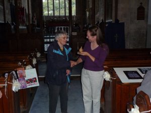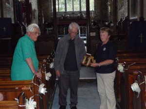 Next was the judging of the photo competition. This year's theme was stained glass from a church in the Central Branch. There were roughly 15 entries and they were judged by Christine Hasman from Winthorpe. The winner was Betty Stracey with a picture of the stained glass window in the ringing room of St. John's, Washingborough. She was presented with the "Onion" trophy, which is a throwback to the onion growing competition that preceeded this competition.