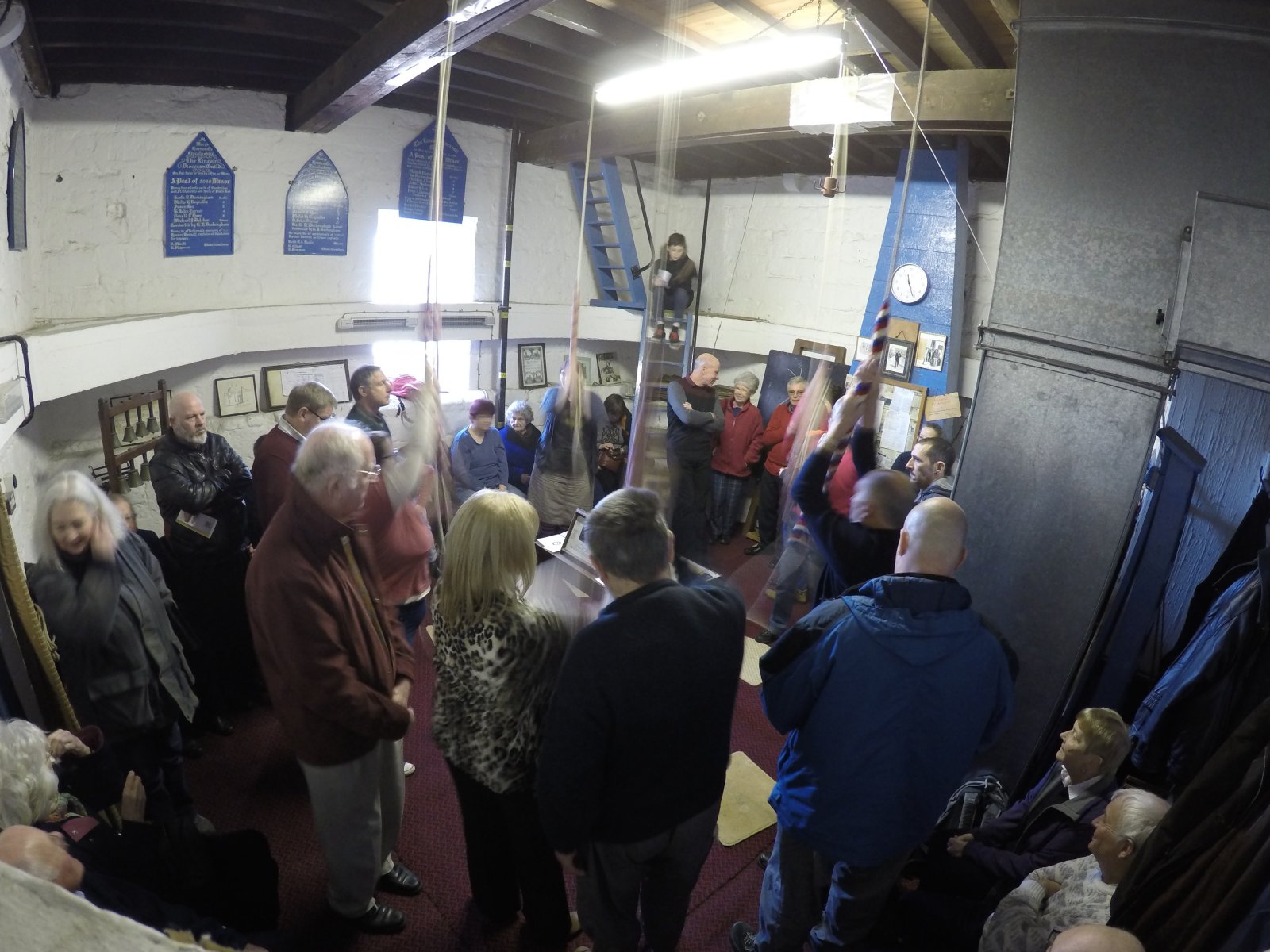 We were greeted by a tower full of people, about 45 or so. It was therefore a bit cosy. We rang some St. Clement's Bob Minor plus Plain Bob, Grandsire and lots of rounds and call changes.