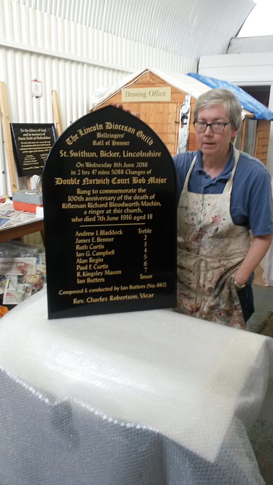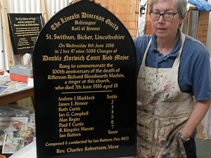 Many thanks to the St. Swithun�s PCC & to Bicker Parish Council for funding the peal board for such a unique commemoration. You can view the peal board in the church until the end of September, when it will be hung with the rest of the peal boards in Bicker Ringing Tower at St Swithun�s church.
