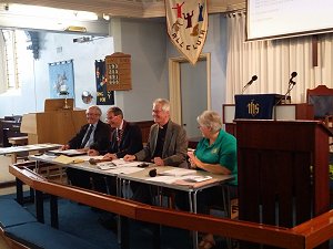 ![]() The Guild Officers in a jovial mood. From left to right: Roger Lord (Treasurer), Alan Payne (Master), The Dean (President), and Sandra Underwood (Secretary) |
