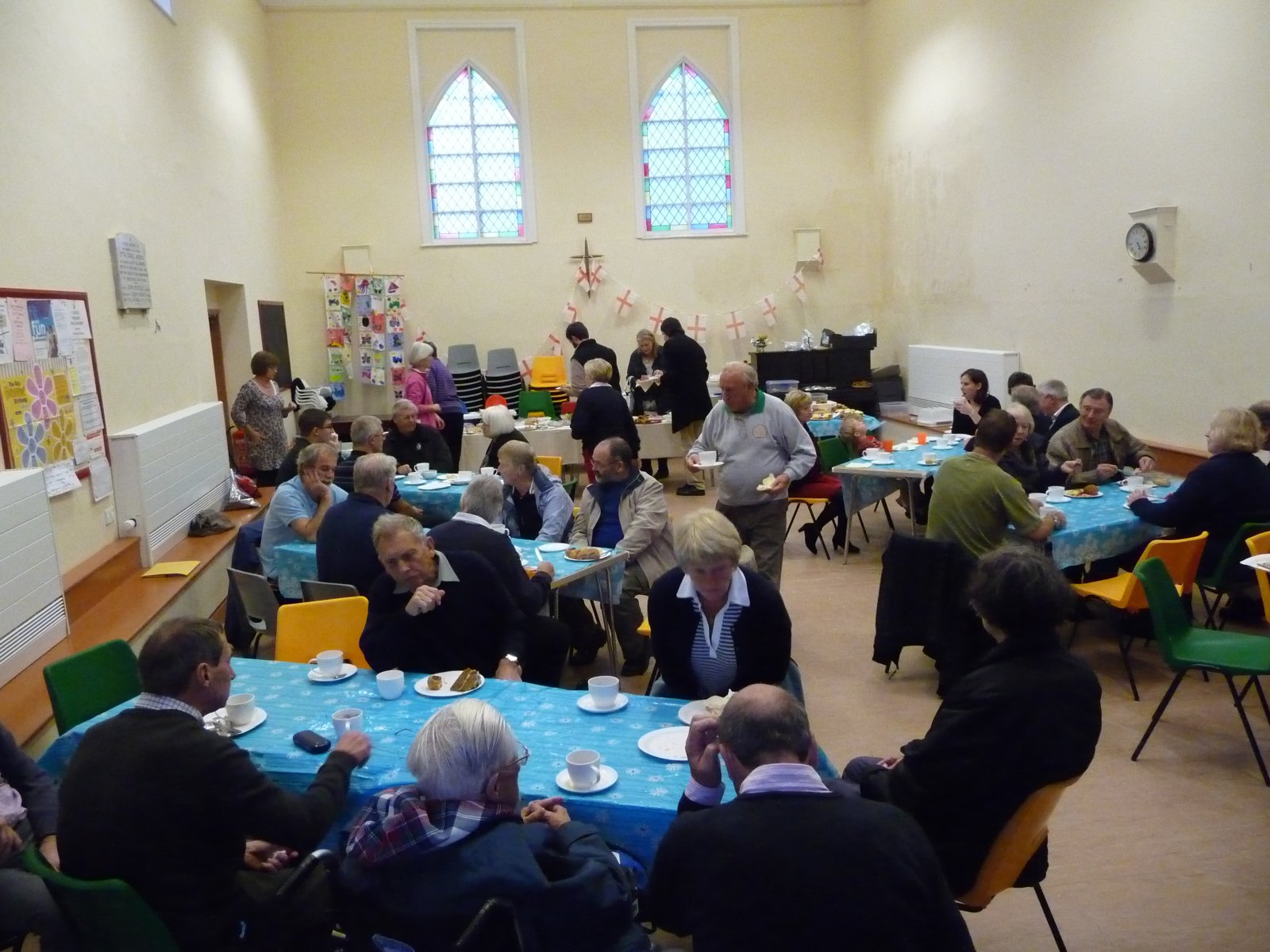 The day had started out looking quite miserable, but by 3:30pm the afternoon was definitely brightening up and by 4:00pm the sun had come out and it was very pleasant and warm outside. In the UMC hall across the road from the church, various members of the West Lindsey Branch were laying on a excellent cold buffet to refresh ringers and visitors alike. Meanwhile during the competition, there was open ringing taking place at Scotter and Messingham.