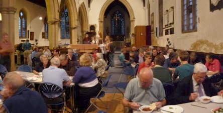 Once the competition was over, all the teams congregated in the church at Deeping, St. Nicholas for tea. This consisted of salad and either a bowl of chilli or some pizza, followed by a selction of cakes and buns.