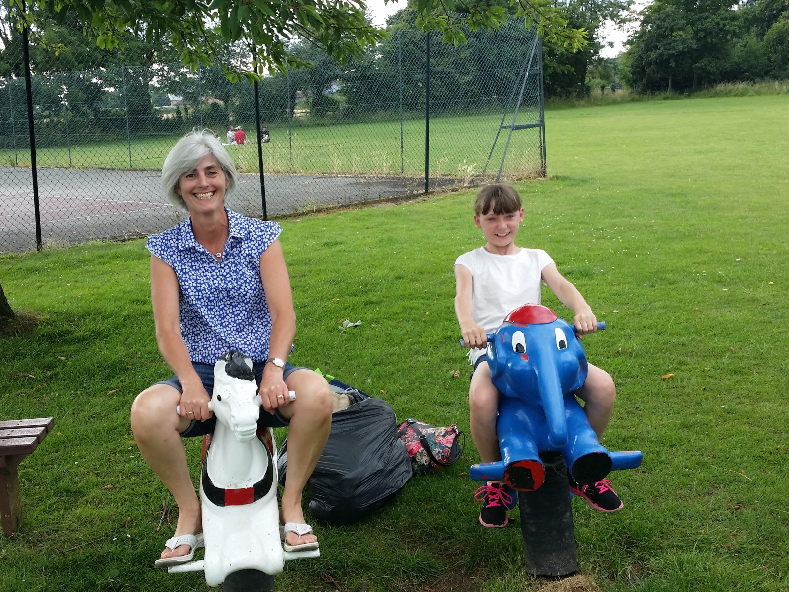 Tea consisted of sausage / burger in a roll plus salad followed by an assortment of cakes. The mandatory tea and coffee was served as wellas orange juice. Towards the end of the tea, the young ringers presented Sue Faull with a gift to say thank you for all her hard work in organising the event. Just before 6:00pm we made our way outside, some of the larger children (see below) finding something to play on, before Tracey Black got us organised.