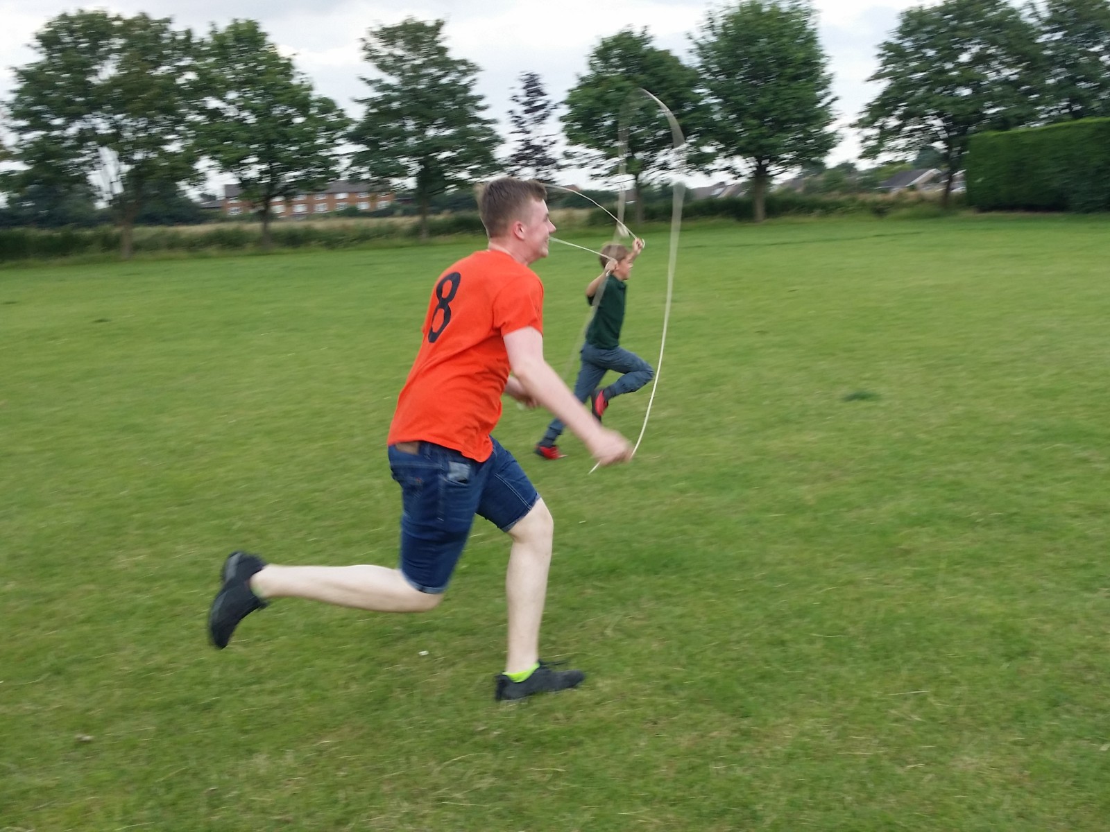 And so started the Mini Olympics. For this we split into 3 teams loosely consisting of a West Lindsey Branch team, a Central Branch team and a joint Northern/Eastern Branch team. We competed in such events as the sack race, frisbee throwing, welly wanging, the three legged race and the skipping race.