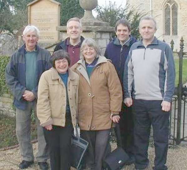 Lyn Hall's peal band (l-r): Terry Maddison (6), Lyn Hall (1), Julian van Geersdaele (4),
