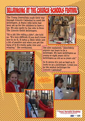 Once again everything went very smoothly and we received a lot of excellent publicity - with the clergy, school pupils and their teachers and with the many members of the public who watched or asked what it was all about. One teacher told us that she had been trying to get the simulator for her pupils for 3 years but it had been over subscribed, so she was thrilled to have got her pupils on it this year. Another teacher said she had asked for it again this year as it had been so popular with her group last year. A very nice article was produced by some young journalists for their school newsletter, which you can see below.