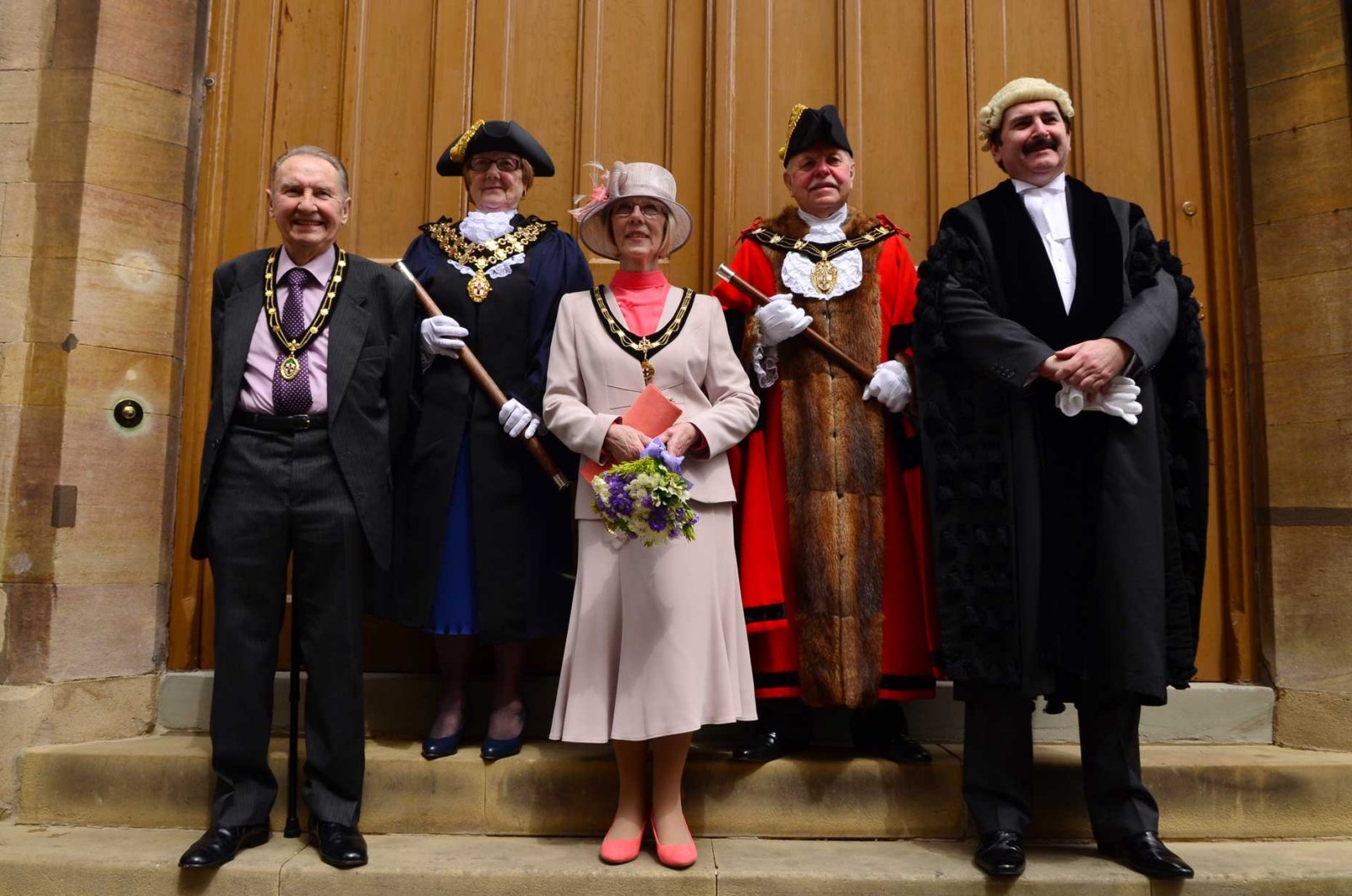 (New Civic Party on the steps of the Guildhall following the Mayor Making Ceremony.