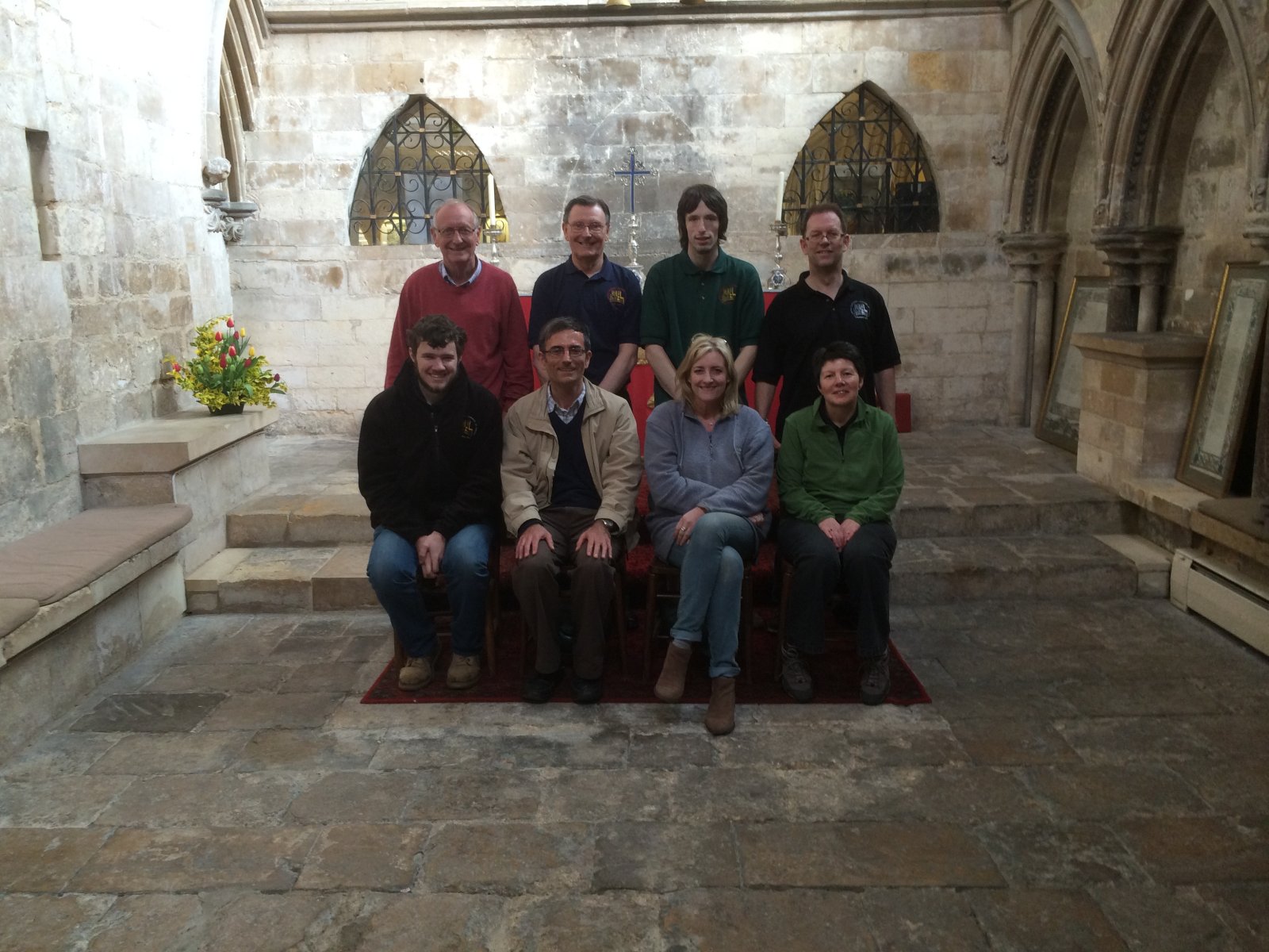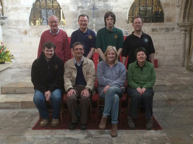 The peal band, L-R: Ian Lloyd, David Fox, Christopher C P Woodcock, Andrew Blacklock