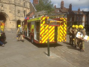 Happily it proved to be a false alarm. It appears that during a procession to the font, which is next to the Cathedral shop, the Thurifer (who's job it is to generate a lot of smoke) had inadvertently wafted some smoke into the shop where the smoke alarms (which were isolated in the rest of the Cathedral) were fully functional.