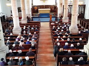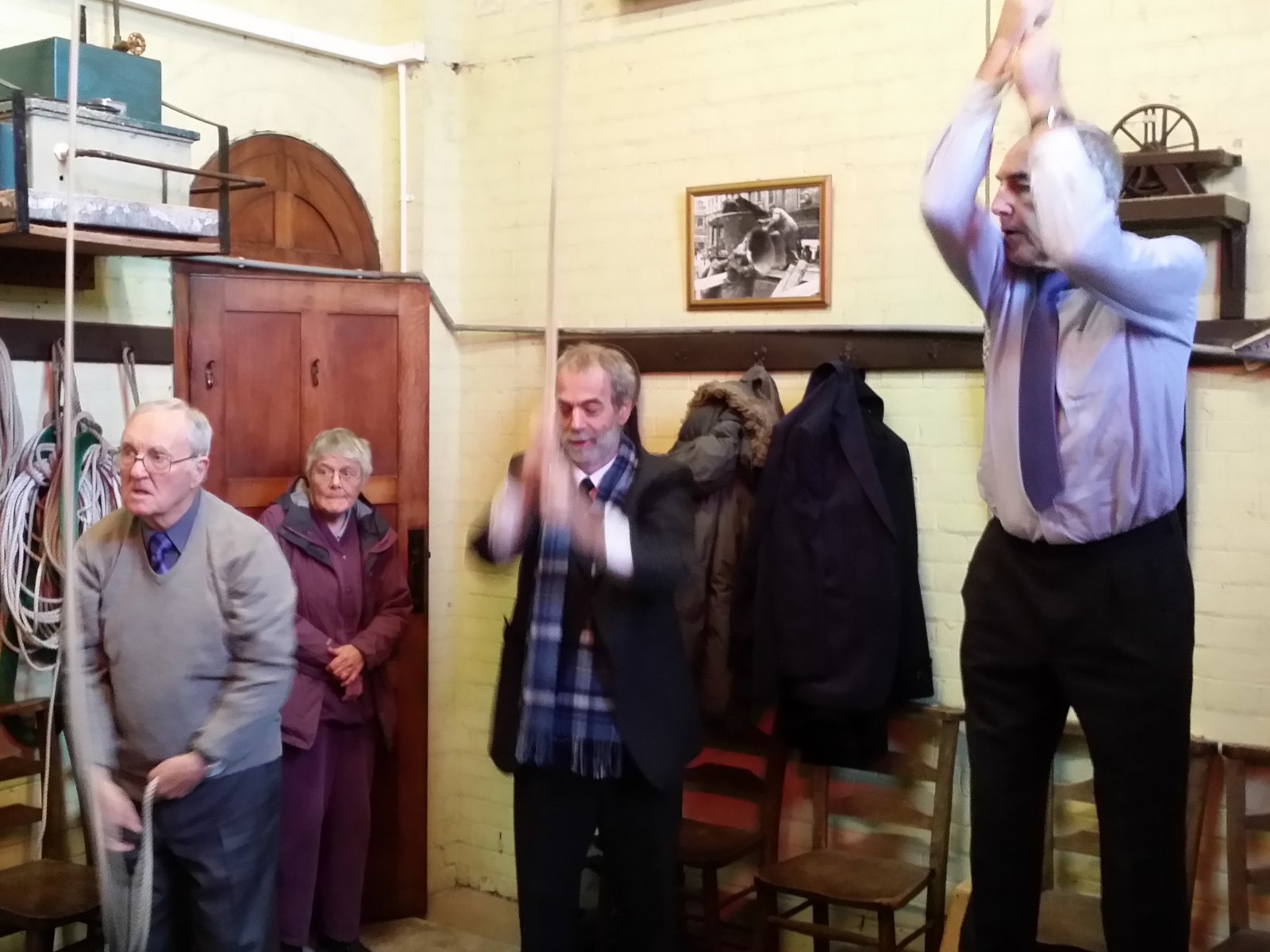 I arrived at St. Giles Church in Lincoln just before 10:00am and went up the tower to ring on the half muffled bells. There was just time for a short touch of Grandsire Triples before the service. The final piece of ringing was diminishing rounds, where one bell stands at a time starting with the treble and finishing with the tenor.