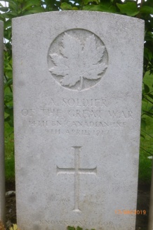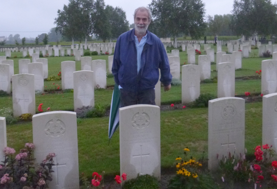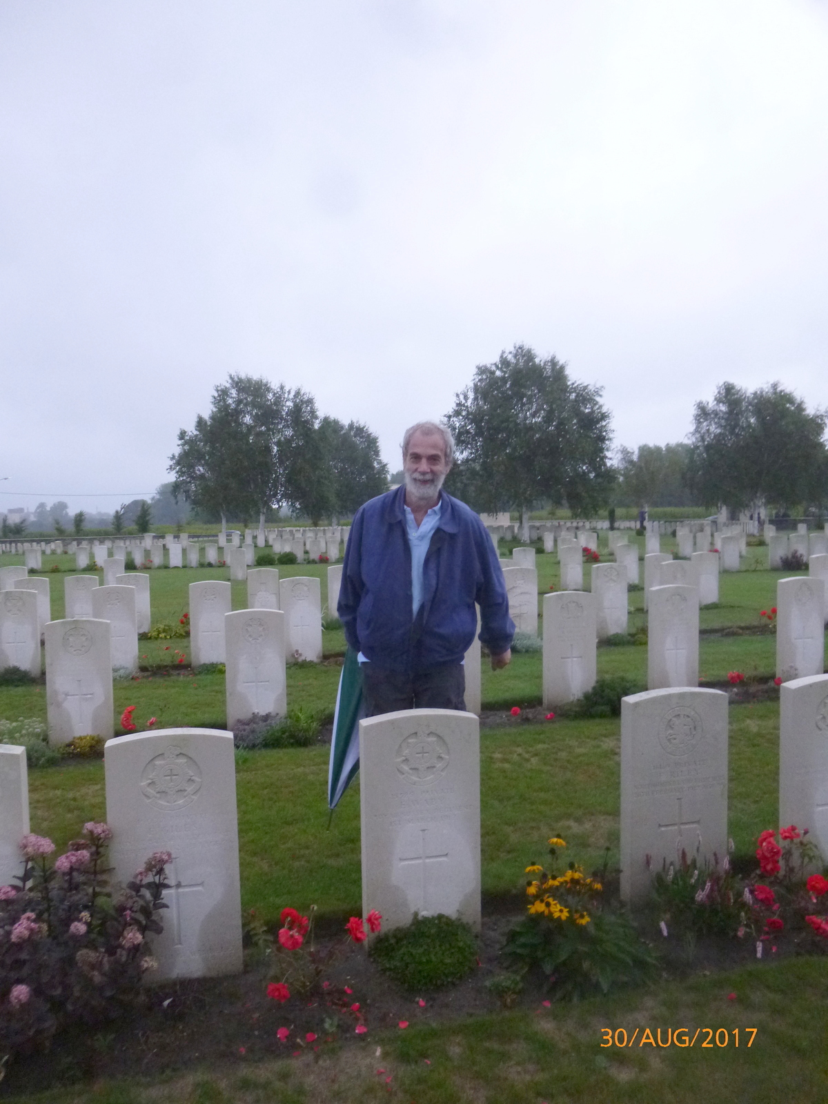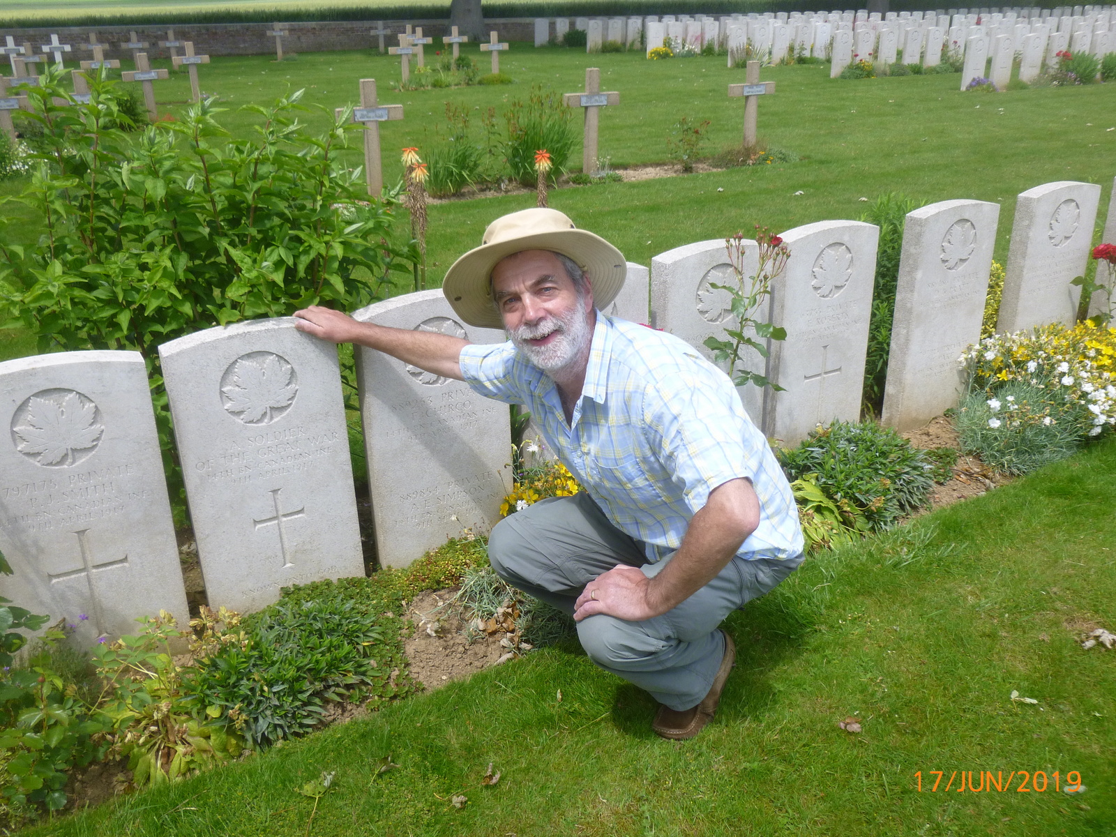 Raymond emigrated to Canada in 1911 and joined the Canadian forces in 1914, incidentally enlisting in London - the Ontario one! Knowing Raymond was in the 14th Battalion of the 1st Canadian Division I was able to pinpoint (via Nicholson's official reports) the likely spot where Raymond fell. Close by this spot is Nine Elms Commonwealth War Grave Cemetery and on visiting this cemetery in 2019, I discovered nine graves of soldiers from 14th Battalion who fell on April 9th 1917 whose identity are 'known unto God'. There has to be a fair chance that Raymond is buried in one of these nine unmarked graves. The photograph below shows me in front of this row of unmarked graves.