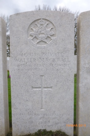 I visited Private Bell's grave in 2019. The Cambrae East Military Cemetery is tucked away in a small corner of a large German WW1 cemetery, which of course is consistent with Cambrae being on the German side of the Western Front for the vast majority of WW1. As the photograph below shows, it is also right next to a garage forecourt!