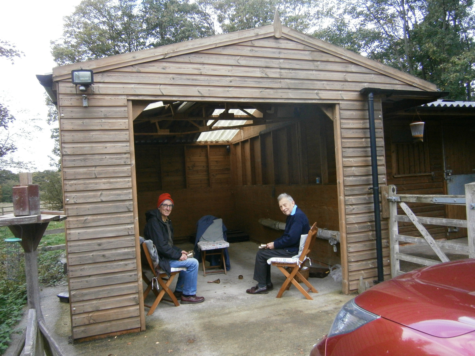 Our third venue has been Clare Heppenstall's (daughter of Robin) beautiful wooden garage. Set in the middle of farm and woodlands, we have enjoyed lovely scenery, bird song and the occasional thudding of horses' hooves.