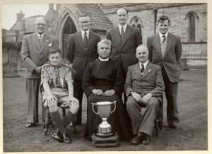 Left to right back row : Herbert Rooke, Robert Lucas, Fred Flint, Douglas Rooke Front row : James Rooke, Revd Habgood (Vicar), George Challans. |