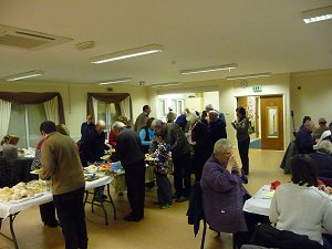 After the service we all moved down to the "Pavillion" at the Playing Fields, approximately 1/4 mile from the Church. A variety of 5 different soups were waiting for us on our arrival, along with Tea and Coffee. After the vicar had said Grace, we commenced on a cold buffet of epic proportions. As usual we were well catered for by the West Lindsey Branch and I need not have worried about not having booked.