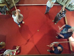 The final tower of the day was Dewsbury Minster. We were met by the local representative, who I sensed was probably not a ringer, but probably one of the churchwardens. The layout of the church is quite unusual. The church has basically been split in half. The east end of the building is now used for community, heritage and refectory facilities. The worship space is in the west end of the building and the altar is at the west end of the church by the tower. To access the tower we were taken in through the east entrance and through the church, which is quite breathtaking. A very impressive 3 manual (plus pedalboard) organ with remote console is one of the key features. The easter garden on it's own was quite impressive and one of the largest I've seen. In order to access the ringing room, we had to walk behind the altar and through a door into a store room. Being an altar server this feels a bit wrong to me, but I put my feeling to one side and made may way through a flower arranging room under the tower to the tower door. From there, it is a short ascent to the ringing room. Another bright and airy ringing room, with another "Rogues" Gallery of local ringers. This is also a ring of 8 and we attempted various methods including Stedman and Grandsire Triples.